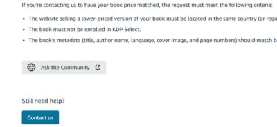 - Visit the Amazon KDP Help Center Contact Page and click on “Amazon Store, pricing, & promotion”